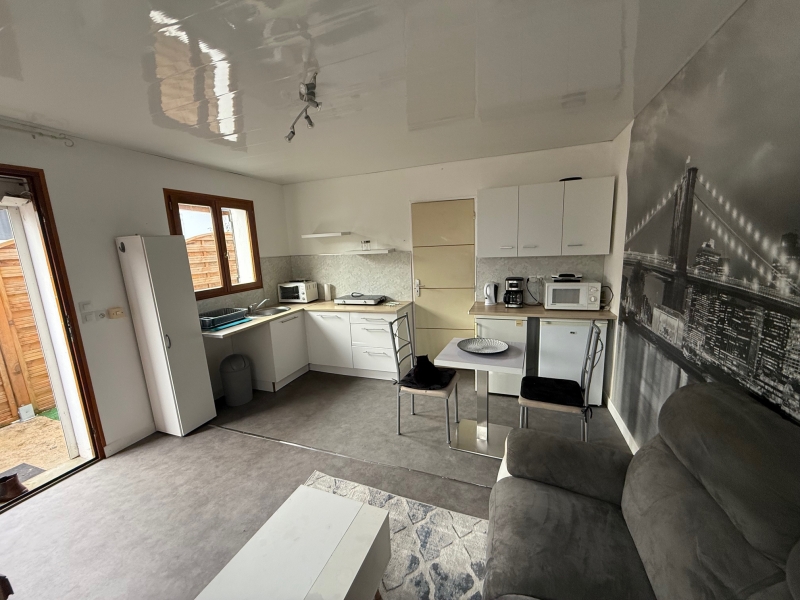Bourges, quartier Baffier/Gionne/ AV de Dun loue maison meublée composée d’une pièce à vivre avec cuisine ouverte, chambre, salle de bain avec WC, libre de suite, petite terrasse et jardinet, loyer 400 + 30 € de provision sur charges, dépôt de garantie : 800 €, honoraires agence à la charge du locataire 319 € dont 87 € d’état des lieux, les risques auxquels ce bien est exposé sont disponibles sur : www.géorisques.gouv.fr, DPE E 336 kw/an/m2 GES B 10 kg CO2/an/m2, montant annuel estimé des dépenses d’énergie pour un usage standard , abonnement compris basé sur les années 2021 2022 2023 entre 780 € et 1090€