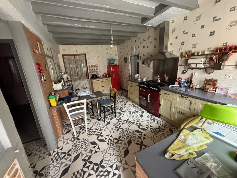 Souesmes entre Salbris et Romorantin, maison dans bourg composée d’une véranda, grand salon salle à manger avec cheminée, vaste cuisine , une chambre avec salle de bain et douche, grand dressing , une autre chambre avec salle d’eau, buanderie, étage palier/ salon, chambre à finir d’aménager, grand grenier, jardin de 647 m2 avec garage et atelier, chauffage gaz et pompe à chaleur, DPE C 156 kw/an/m2 GES C 28 kgCO2/an/m2, le montant estimé annuel des dépenses d’énergie pour un usage standard entre 2100 et 3000 €, basées sur les années 2021 2022 2023, abonnement compris, prix 143100 € frais d’agence inclus ( dont 8100€ d’honoraires à la charge de l’acquéreur), les risques auxquels ce bien est exposé sont disponibles sur : www.géorisques.gouv.fr, Carmin immobilier 02 48 24 37 09