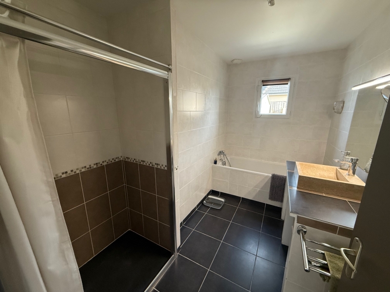 Un dégagement dessert de belles chambres, une salle de bain moderne avec douche et baignoire, ainsi qu’un WC indépendant.