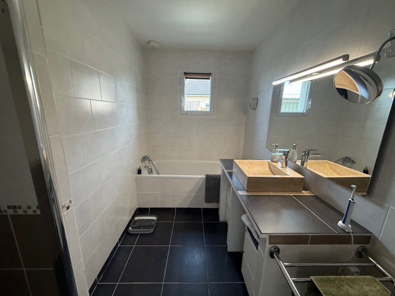 À l’étage, un palier distribue deux chambres supplémentaires et une salle d’eau avec WC, offrant un espace nuit parfaitement adapté à une famille.